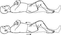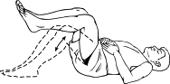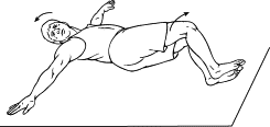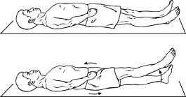 1. Lie on the floor as shown. You may do this exercise with your knees bent or straight, but it is harder with the knees straight.