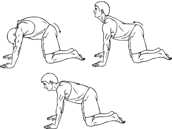 3. Tighten your back muscles, rotating your buttocks up and allowing your back to arch and sag as shown. Hold this position for 15 seconds.