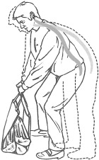 Do not round out your back when lifting any object. You should make sure that you bend your knees, and attempt to maintain a normal curve in your spine.