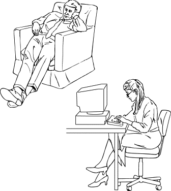 Do not slouch! Sit with a small rolled-up towel, foam cushion, or pillow in your low-back area, just above your belt. Sit with your buttocks all the way back in the chair.