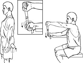 This exercise should be done with the elbow either bent to 90 degrees or held straight.